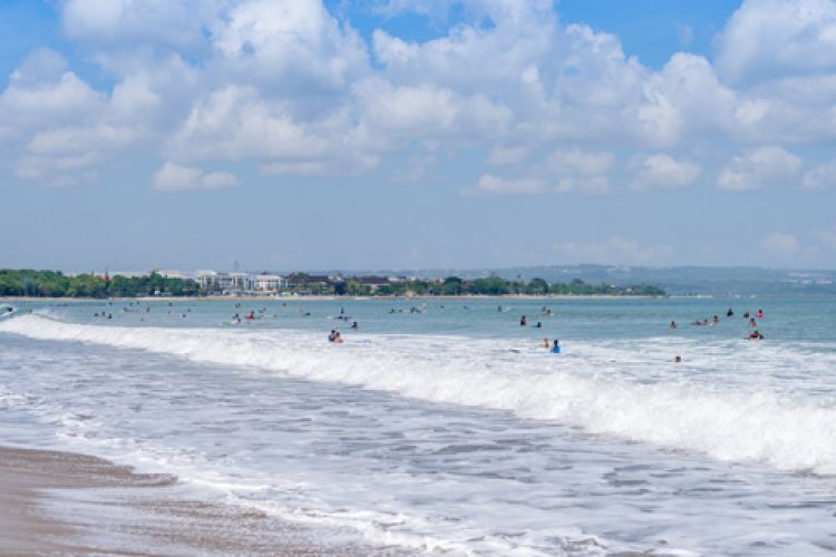 金巴兰海滩位于巴厘岛机场南部,海滩狭长,以其壮观的海上日落美景闻名,被